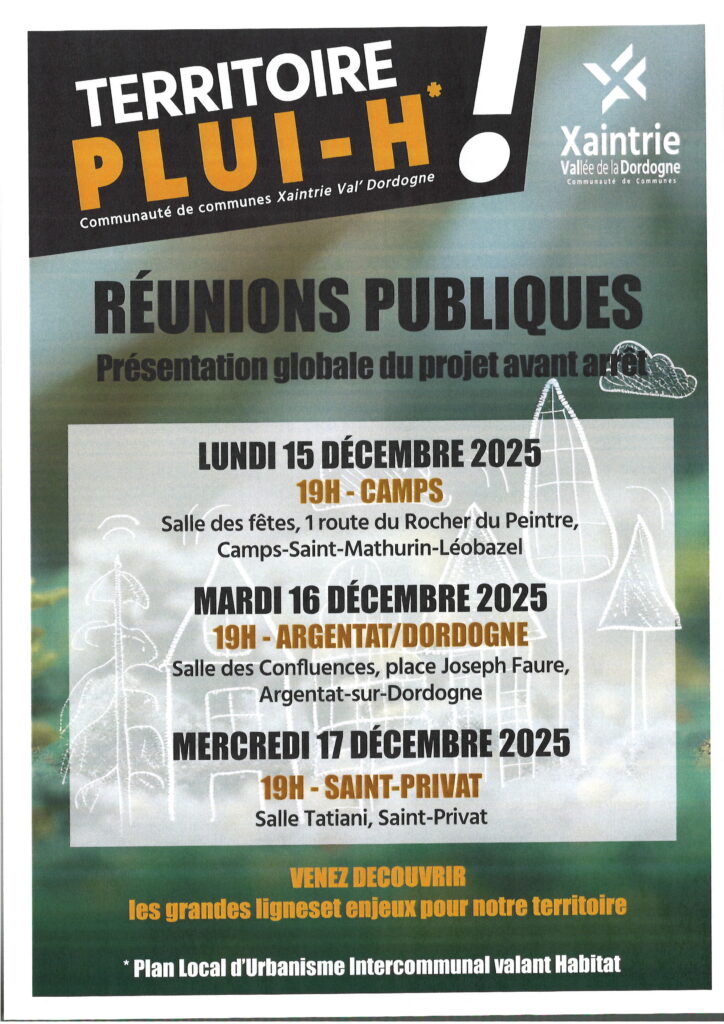 PLUI-H : ***Réunions publiques*** avant arrêté du projet.